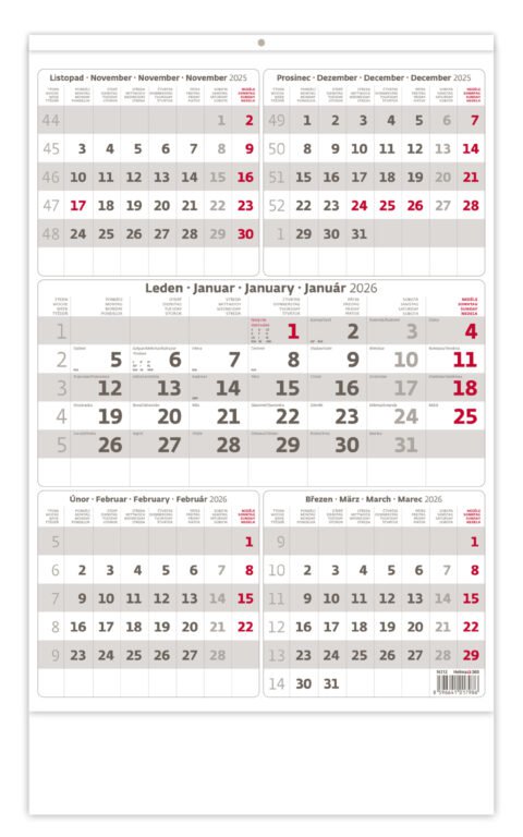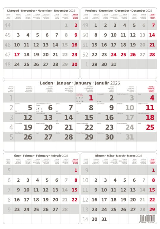 Pětiměsíční kalendář šedý 2026Vyrobeno v ČR
